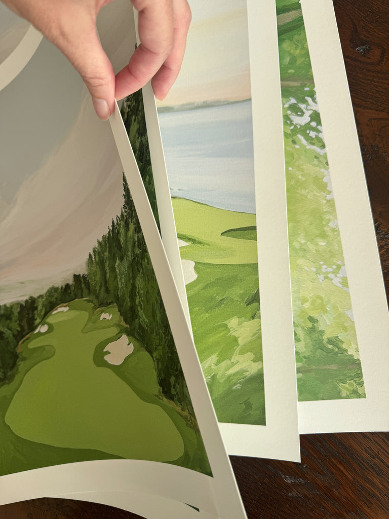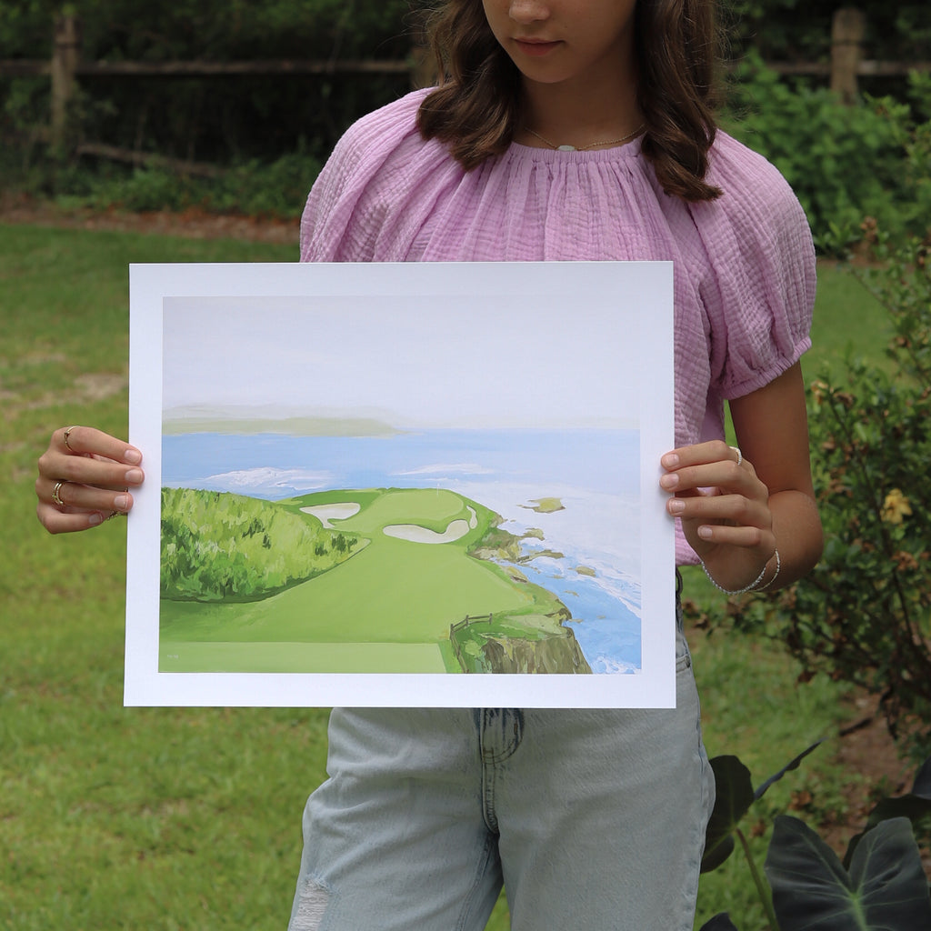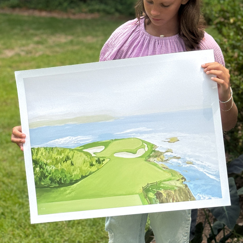 This is an open edition print inspired by No. 7 at Pebble Beach Golf Links, CA from Rebekah's On Par Collection.