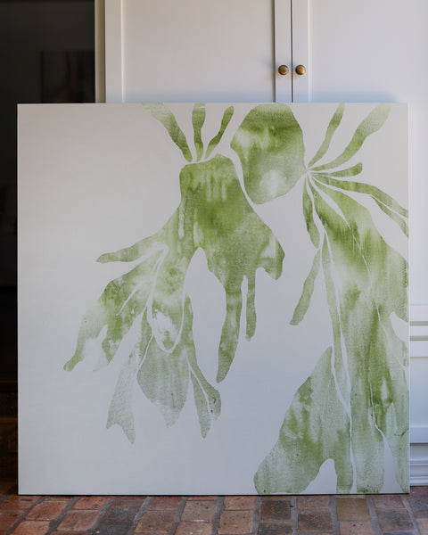 "Hold Fast" is a continuation of simplifying my subjects, process and ideas. I was inspired by the Staghorn Fern which symbolizes continuity, strength and persistence. May you hold fast to your endeavors and seek out all that makes you uniquely you.